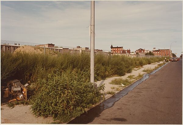[Fence with Overgrown Weeds and Water in Gutter, New York City]