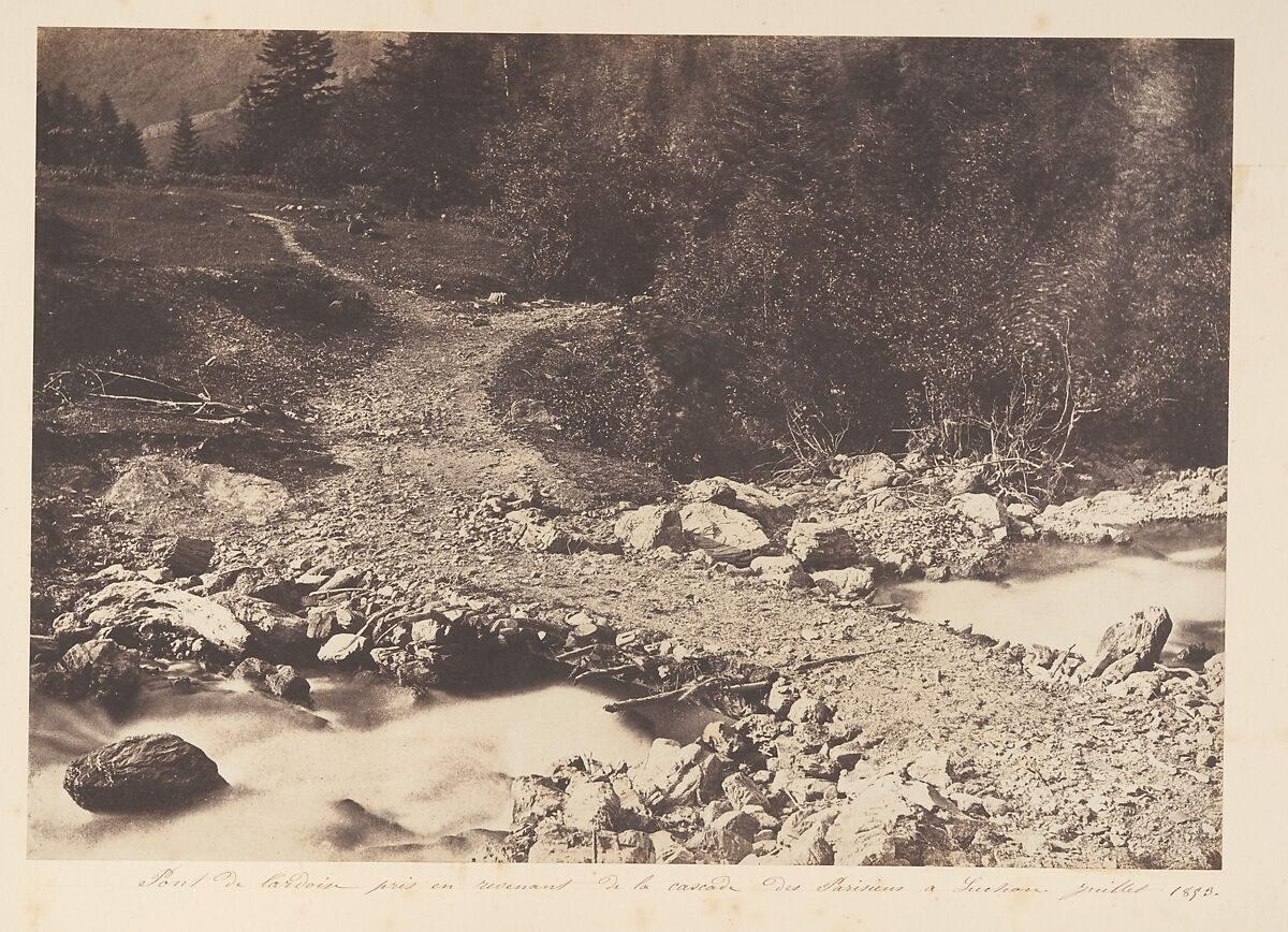 In the summer of 1853, Viscount Vigier spent two months photographing in the Pyrenees. He had learned the waxed paper process from Gustave Le Gray but preferred Talbot's original technique for its strong contrasts of light and dark. When Vigier exhibited his views in London and Paris in l854, they were highly acclaimed. These first photographs of the Pyrenees appealed to the English taste for the sublime and to the French romantic temperament.