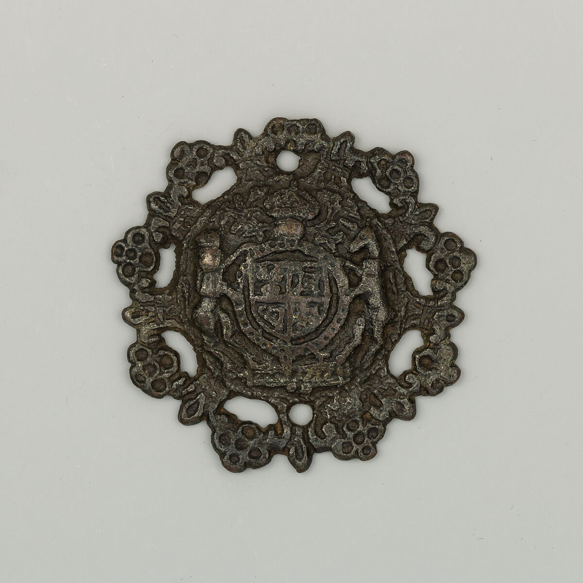 The pierced rim consists of a frieze alternating the French fleur-de-lis (France was an official claim for England since the 14th century) and the English rose.
