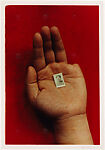 These two works are part of the series called Memories in which he takes old family photos and images from newspaper reports, reduces them in size and shows them in front of his mutilated hand. One is a childhood picture of himself taken during the Cultural Revolution, the other of Mao from the same period. While his damaged hand commemorates the June Fourth Movement, the small black and white photos are rememberances of the past associated with his childhood. They are powerful and disturbing images juxtaposing pain and sadness with idealized pictures from another time.