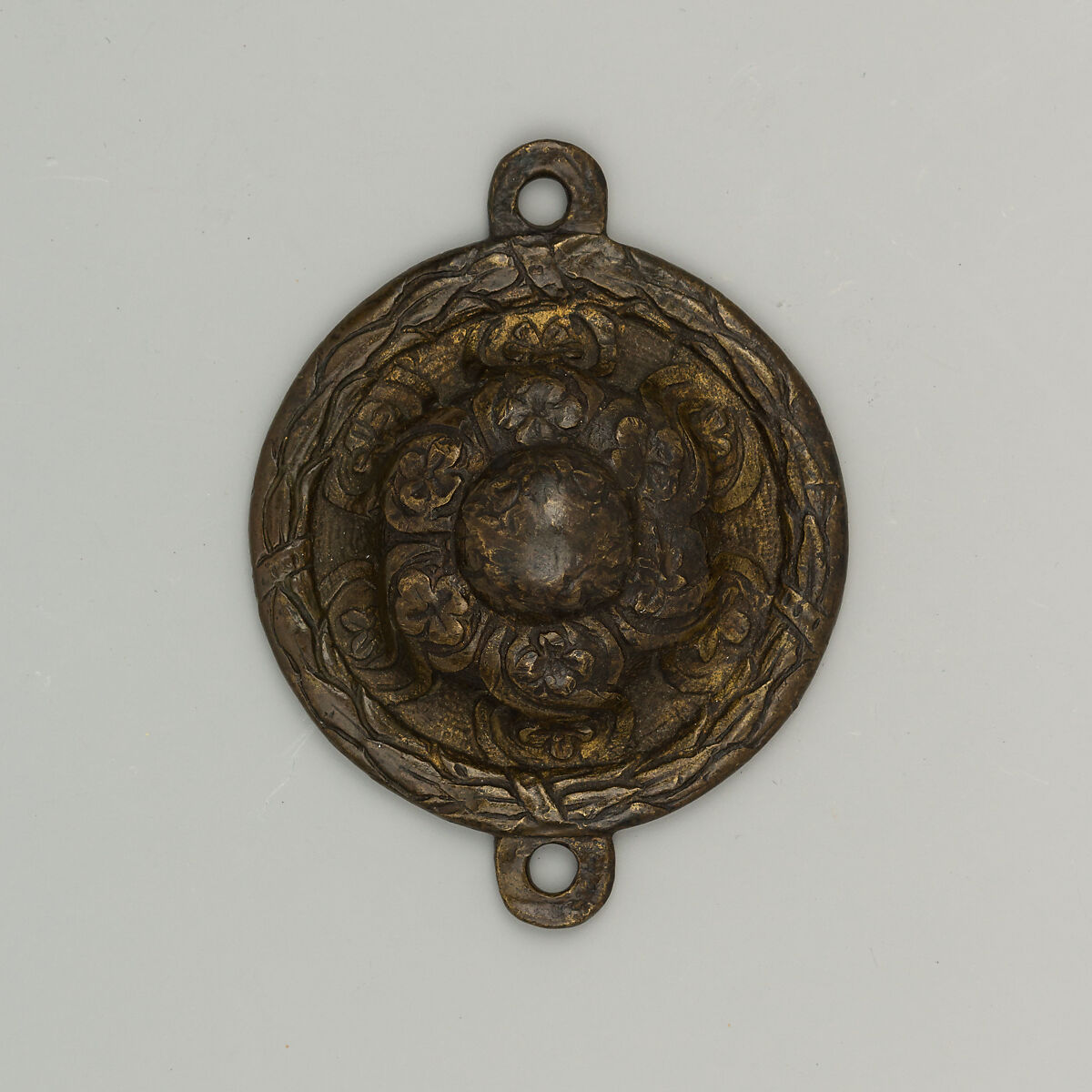 Bit bosses were ornamental elements decorating both sides of a horse bit. This type of boss, with a classical decoration featuring scrolls and flowers circled by a leaf garland, was very popular in Western Europe around 1700.
