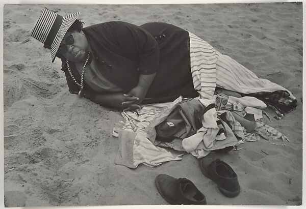 - Title:[Beach Scene: Woman Wearing Striped Hat and Dark Jacket, Coney Island, New York]