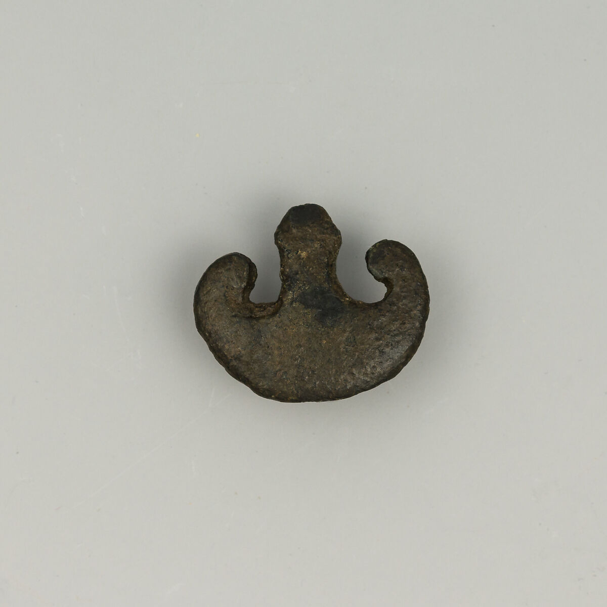 This small bronze element, shaped as a pelta shield, decorated the horse tack of a German-Roman rider, probably fighting in the Imperial army.