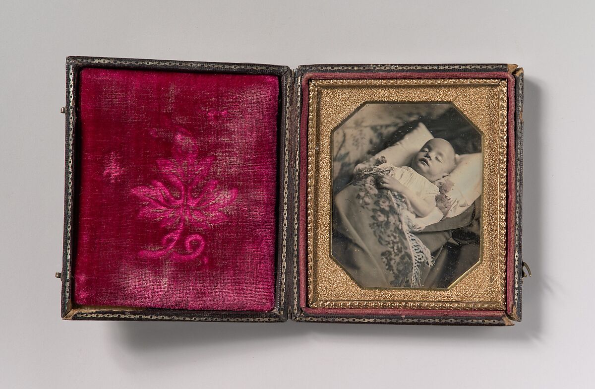 - Title:[Postmortem Baby, Partially Covered by a Flowered Shawl with a Fringe Hem]