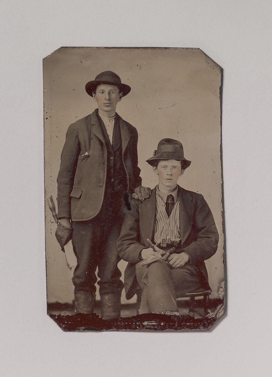 - Title:[Two Young Men, One Seated and One Standing, Holding Carpentry Tools]