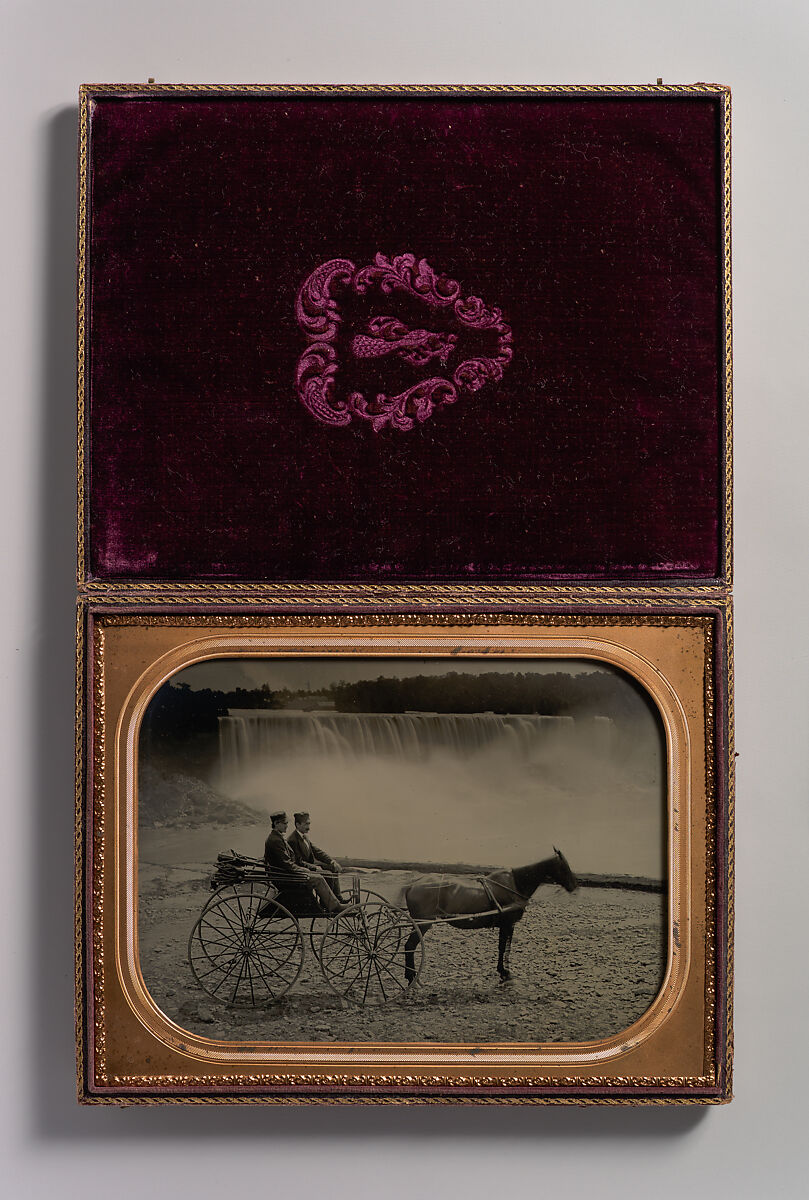 - Title: [Two Men Seated in a Horse-Drawn Carriage in Front of Niagara Falls]