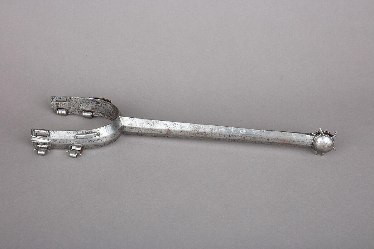Around 1400, the length of the rowel spurs’ necks started to increase in western Europe, some examples extending even as long as the rider’s foot in the 15th century. At this period, the elevated war saddles and the very specific riding style, with long stirrup leathers and legs extended forward, had the consequence of taking away the rider’s feet from the horse’s flank. Thus, these long necks gave them easier access without having to disturb the rider’s position too much.