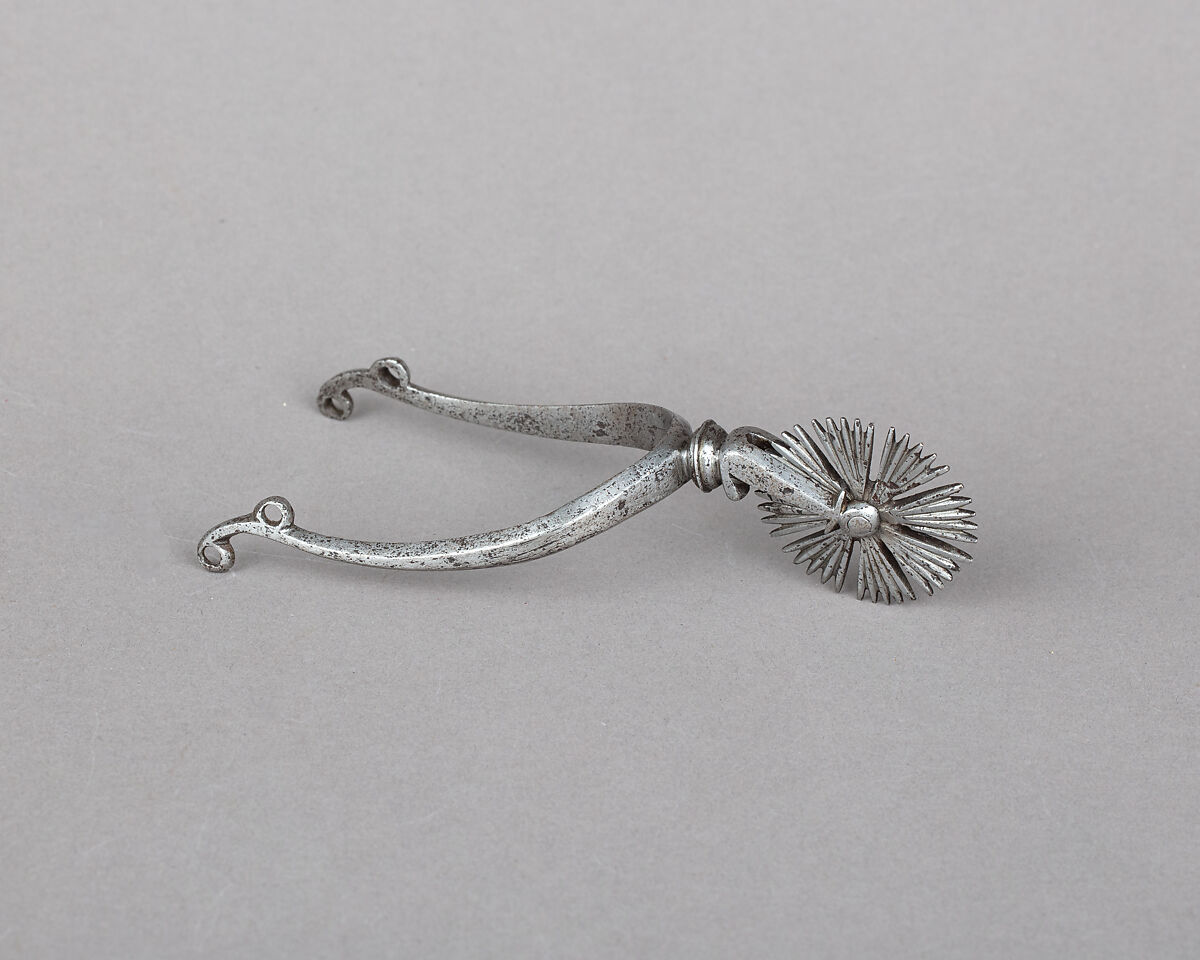 Around 1600 spurs became true fashion accessories often worn outside the equestrian context, and some of them were real pieces of jewelry. Even if this spur is simpler and more practical than some of its luxurious contemporaries, its design and its flower-shaped rowel give it enough elegance to align it with this idea.