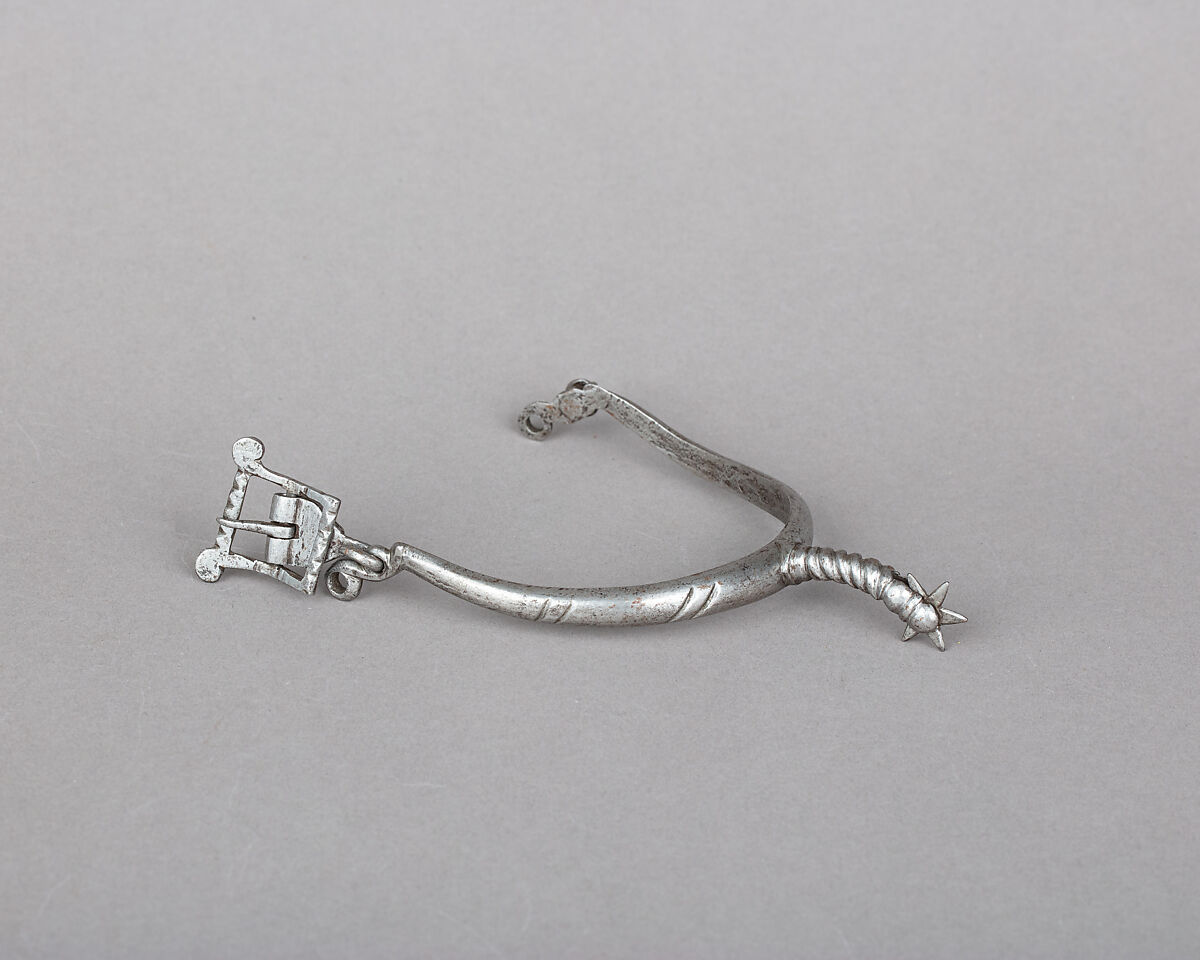 By the late 17th and in the 18th century, average Western European spurs became simpler, thinner, and featured smaller rowels, contrasting with some of the extravagant shapes and decorations found in the previous period. Even when carefully manufactured and slightly adorned, like here, they were usually discreet equestrian accessories. New horse riding trends also recommended smaller rowels as being better for the horse and giving more precision to the rider’s actions.