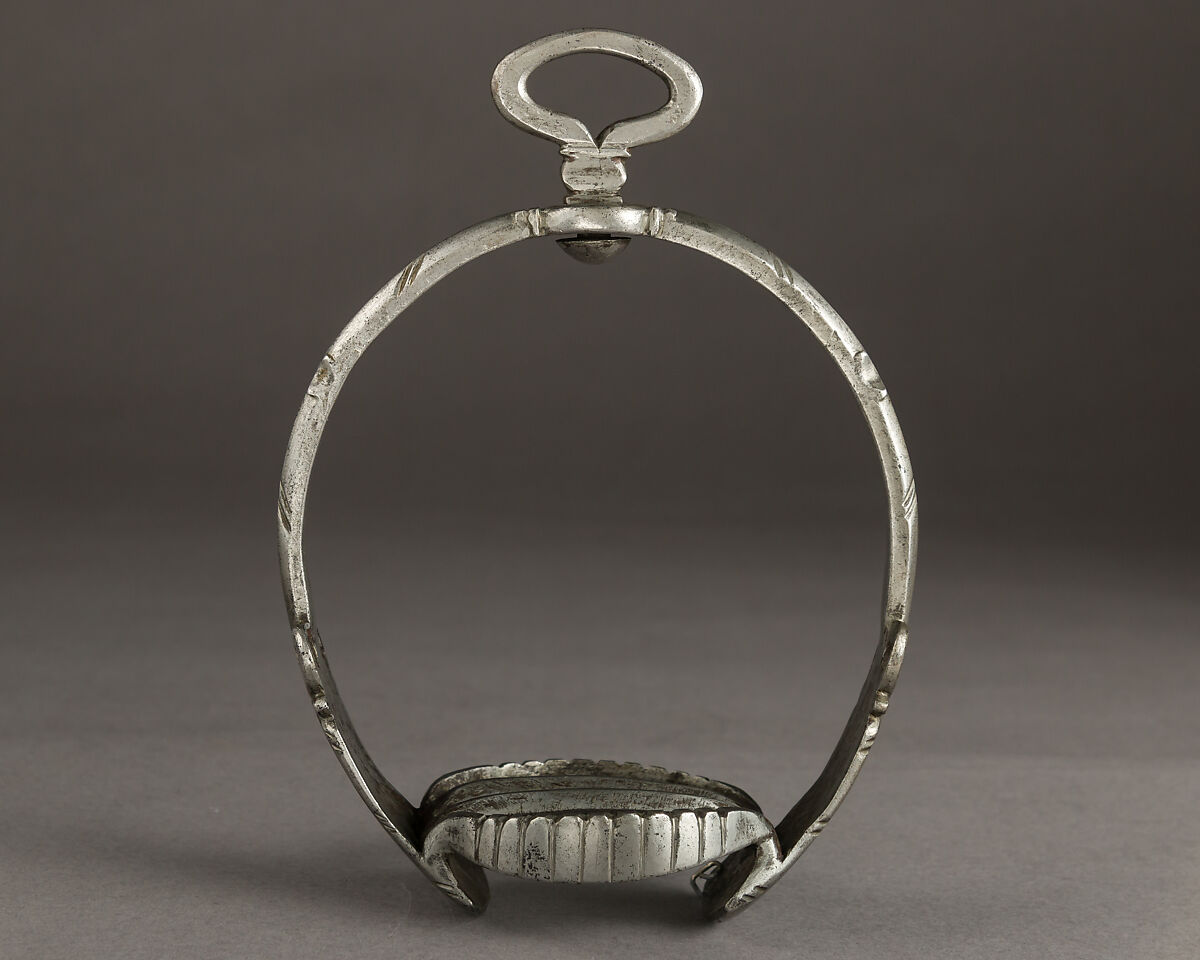 Such stirrups of circular shape came back in fashion in the mid-17th century in the northern part of Europe. The swivel suspension eye allowed the stirrup leather to stay flat against the horse’s flank when the stirrup is in use, but it is more fragile than non-rotating systems.