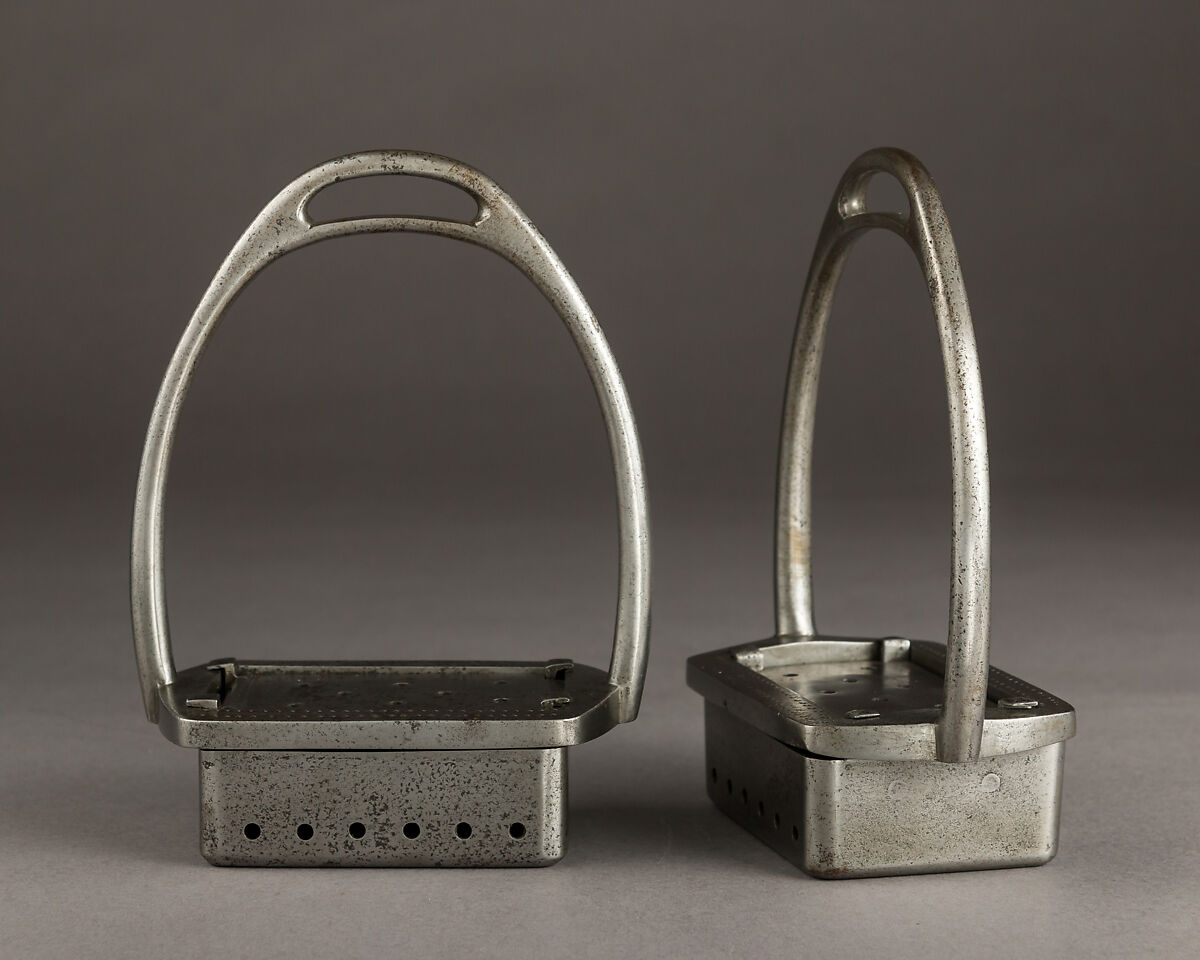 Each footplate of these stirrups is featured with an openable pierced box where hot charcoals were placed in order to keep the rider’s feet warm in winter.