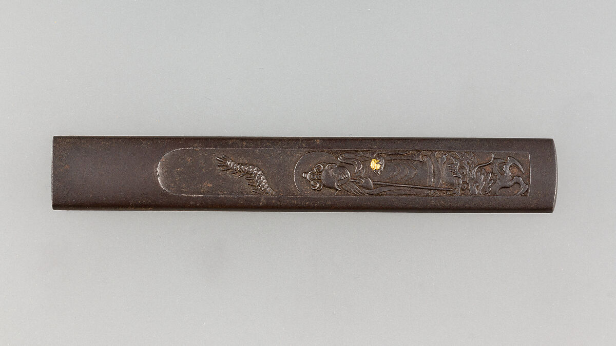 A kozuka is a handle of a by-knife that is part of a sword mounting. It is kept in a slot on the reverse of a katana scabbard, often with a matching kōgai (hairdressing tool).