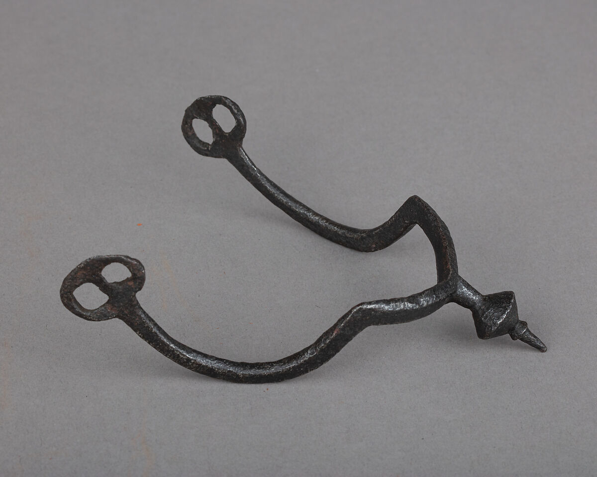 Prick spurs were the main type of spurs used in the Middle Ages until the mid-14th century, when they were supplanted by rowel spurs, which appeared in Europe a century before and with which they had cohabitated for a time. As a knight’s status was closely related to his horse, spurs became one of the symbols of chivalry, and one of the tokens given to him during his knighting.