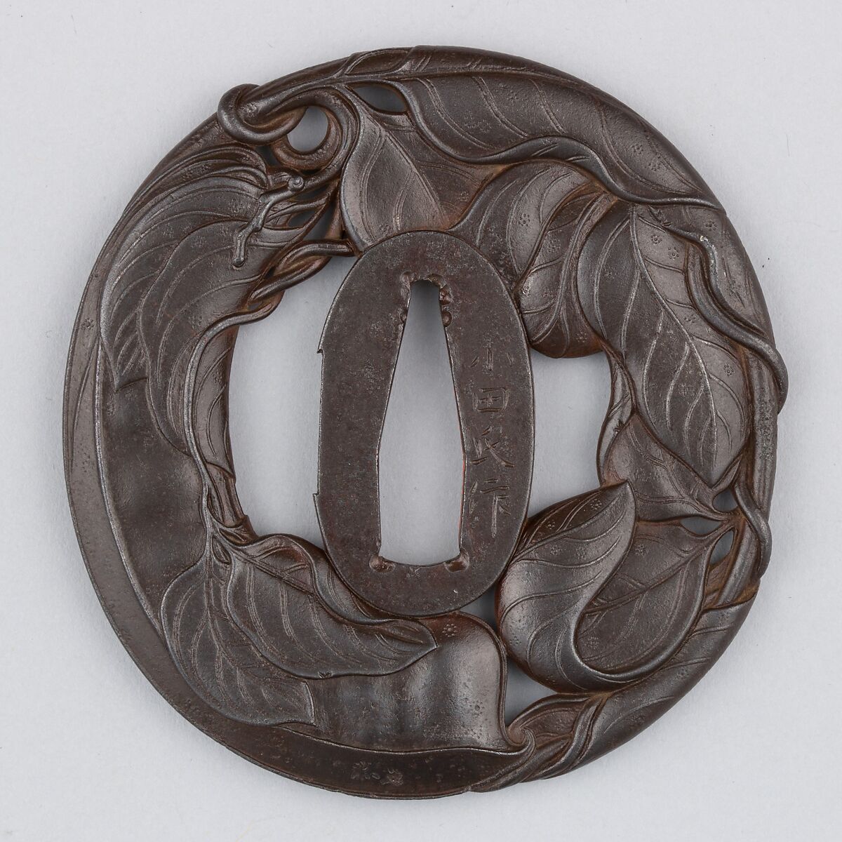 A tsuba is a sword guard and part of a sword mounting. It is mounted between the sword’s blade and grip to protect the user’s hands.