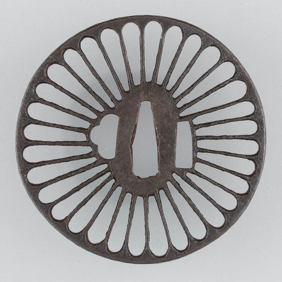 A tsuba is a sword guard and part of a sword mounting. It is mounted between the sword’s blade and grip to protect the user’s hands.