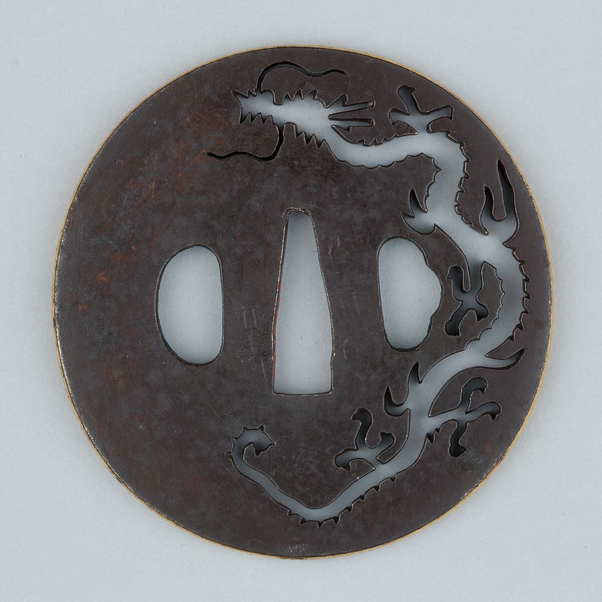 A tsuba is a sword guard and part of a sword mounting. It is mounted between the sword’s blade and grip to protect the user’s hands.