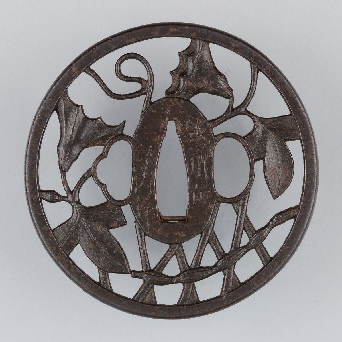 A tsuba is a sword guard and part of a sword mounting. It is mounted between the sword’s blade and grip to protect the user’s hands.