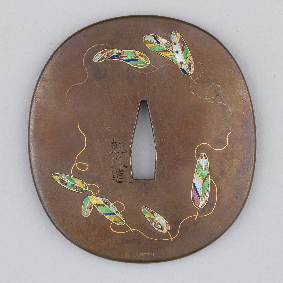 - Medium:Iron, enameled cloisonné (shippō), gold, copper