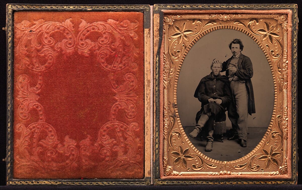 The official United States Army regulations of 1861 stated that all soldiers’ hair be “kept short, and beard neatly trimmed.” However, when Abraham Lincoln let his beard grow after his election victory in November 1860, many Union soldiers also opted to leave their whiskers uncut. Those that preferred a shave and haircut looked to their fellow soldiers or civilian camp followers for help, as few traveled with straight blades, scissors, or mirrors. This occupational portrait of a soldier getting a shave is among the only known likenesses of a Civil War barber at work.