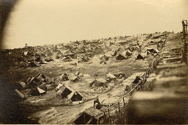 This work of art is currently on loan to the museum.Known by the Confederates as Camp Sumter, Andersonville Prison was the most notorious Confederate facility for captured Union soldiers and officers. Its commander, Captain Henry Wirz, was the only Confederate to be tried and put to death for war crimes after Appomattox. An open-air stockade without wooden barracks for the prisoners, with little food or potable water, and with no medical facilities, the prison was severely overcrowded from the moment it opened. This exceptional image by A. J. Riddle—one of the only surviving landscape views from during the war by a Confederate photographer—was made for unknown purposes. Copyrighted in New York and sold by the artist at the end of the war, they articulate the cruel circumstances that about forty-five thousand soldiers suffered through in Andersonville’s fourteen months of existence. Thirteen thousand soldiers would die there.