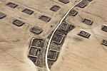 In 2011 the French photographer Frederic Brenner invited eleven prominent photographers to spend six months in residence in Israel and the Occupied Territories, or West Bank, to explore the area’s complexity and to create bodies of work that might broaden and reframe the conversation about the region. Among those invited was Sheikh, an artist best known for his sensitive black-and-white portraits of people living in displaced and marginalized communities around the world. Sheikh’s project takes the form of a trilogy titled Erasure, of which Desert Bloom is the central part. The images were made during several months of flying above the Negev desert and are intended to articulate the rapid transformation of the region. On the one hand, they invoke the Israeli endeavor to “make the desert bloom,” and on the other, they reveal traces of the Negev’s history: the construction of towns for the Bedouin, the natural erosion of the land, the demolition of local dwellings, the remains of military installations, the afforestation campaigns of the Jewish National Fund (JNF), and the transformation of nomadic desert regions into farmland.
