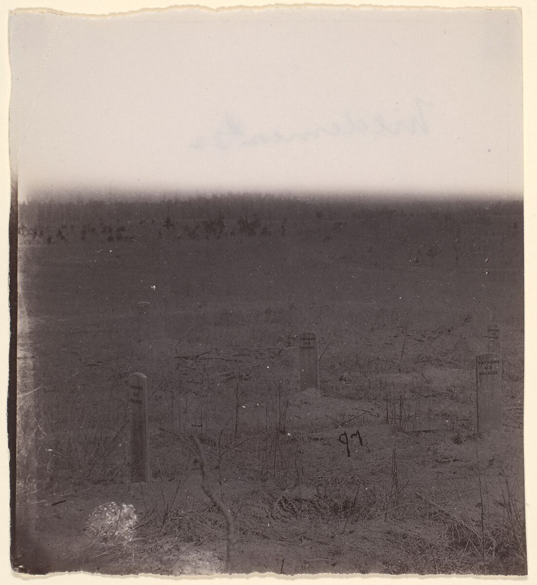 There is still much to learn about the role of the camera during the Civil War. One day we may know more about some of the war’s most intriguing field photographs: the macabre studies of skulls and unburied bones discovered by an unknown photographer in the Wilderness battlefield where Generals Robert E. Lee and Ulysses S. Grant had fought to a bloody draw in May 1864. It seems likely that these photographs date from the immediate postwar period, during cleanup operations. Printed from negatives that were probably unintentionally solarized during development in the field, the photographs appear illuminated by an unearthly light and are, in part, tonally reversed: the black sky becoming an appropriate symbol for the terrible place called Wilderness, second only to Gettysburg in the number of Union killed, wounded, and missing.