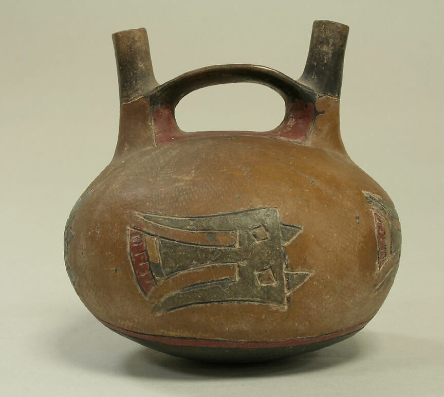 - Title:Double spout and bridge bottle with birds