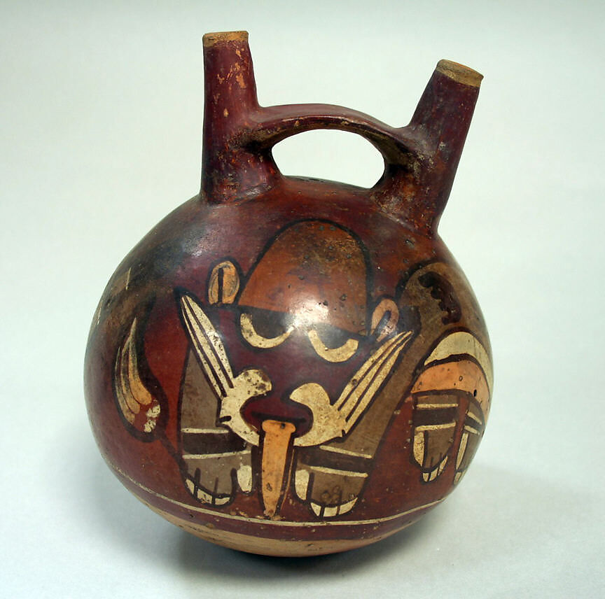 - Title: Double Spout and Bridge Bottle with Faces