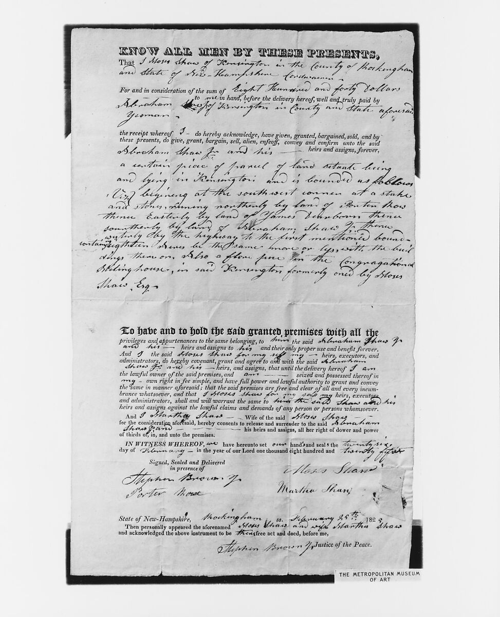 - Title: Manuscript Deed for Shaw Homestead, Kensington, New Hampshire
