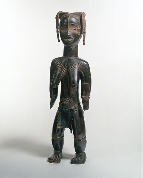 A lü me was typically commissioned by a man of standing in honor of a favorite wife. The subject’s distinguishing traits, including her facial features, cicatrices, and braided coiffure, would be captured by the artist through direct observation. The unveiling of a completed figure was celebrated with lavish feasting sponsored by its patron. Named for their subjects and stored in special baskets, such portraits were subsequently displayed on special occasions.