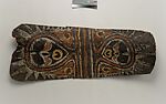 This panel is one of over 270 original paintings commissioned from Kwoma artists in the village of Mariwai in 1970 and 1973 by Douglas Newton, the first curator of Oceanic art in the Department of the Arts of Africa, Oceania and the Americas. Once completed, they were shipped to New York and installed in the galleries. In 2007, when the Oceania galleries at the Metropolitan Museum were renovated, the panels were attached to a new superstructure. Although less steeply pitched than the Kwoma houses found in villages today, the installation evokes the essential form of a ceremonial house ceiling. Together these suspended panels form an impressive and spectacular installation in the Metropolitan Museum which, at 80.4 feet (24.5 meters) end-to-end, is the largest contemporary art installation in the museum.