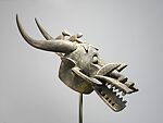 Impressive helmet masks abound in the region spanning the present-day national borders of Côte d'Ivoire, Mali, and Burkina Faso. Sculptors carve works intended to incite fear by making visual references to powerful animals, including crocodiles, warthogs, and antelopes. The aggressive imagery artists create in helmet masks like this one contrasts with their more delicate handling of kpeliye'e face masks. Not associated with any single animal, kponyugo helmet masks foster spectators' uncertainty and apprehension. The mask's open jaws and sharp teeth appear ready to devour its prey and thus visually underscore its ferocity. Members of poro and other fraternal associations in the region don composite helmet masks and full-body outfits during funerals and on other occasions to punish human lawbreakers and deter malevolent spirits. Due to the aggressive and combative nature of the helmet masks and their performances, women and children are enjoined to avoid seeing them, a stricture honored due to the costly consequences that transgressions precipitate.