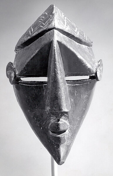 Compared to the neighboring Luluwa peoples, Lwalu artists produced masks that reflect a dramatically different style. Facial representations are composed of purely geometric elements, sharply angled planes and smooth unadorned surfaces. Mask forms are distinguished from one another through the prominent noses that were inspired by the beaks of different birds. These masks were worn at dances to celebrate the circumcision and initiation of young men into the Ngongo society and to appease the spirits that control hunting.