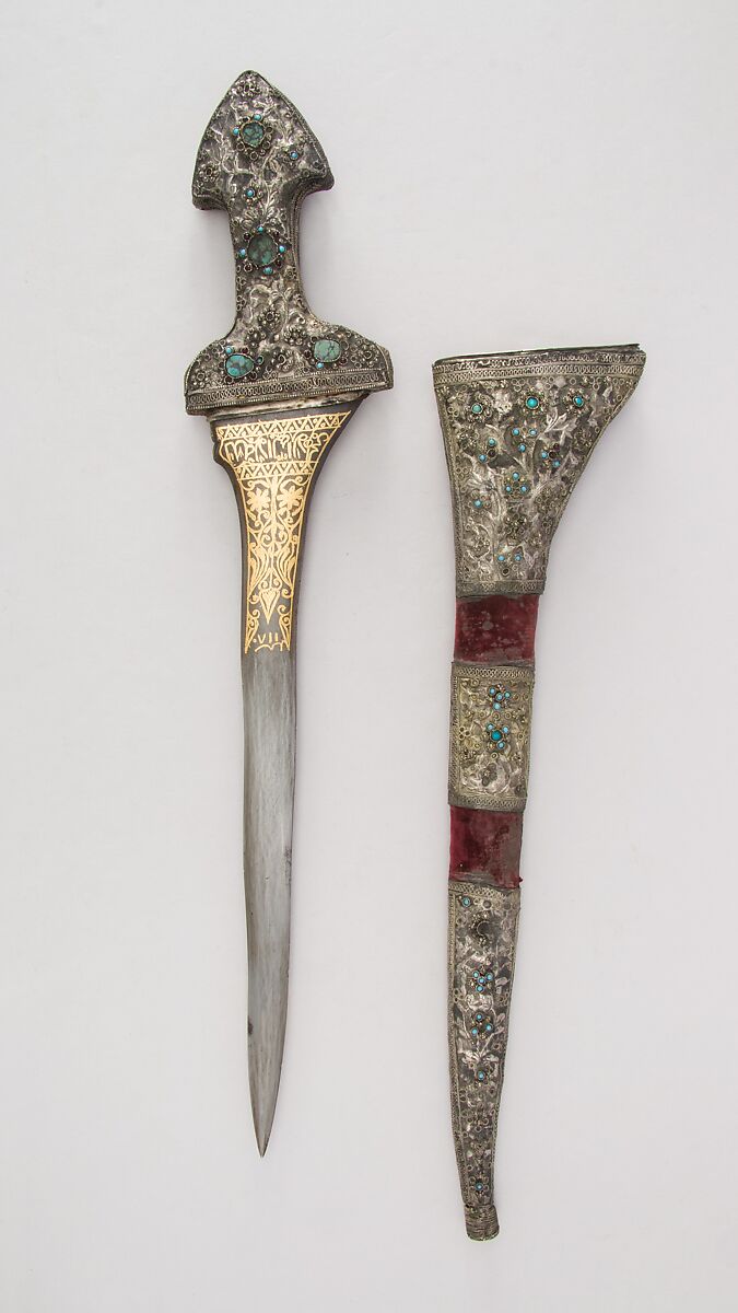 - Medium: Steel, wood, silver, turquoise, garnet