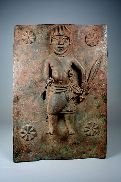 This artwork was restituted in February 2021. It is no longer in the museum’s collection.At its origins, the centralized city-state of Benin was founded by Edo-speaking peoples. The accounts by official court historians and descriptions provided by visitors evoke a vibrant cultural center continually redefined by its leadership through shifting internal and external power dynamics. According to oral tradition, circa 1300, Edo chiefs are reputed to have reached out to the leader of neighboring Ife, Oranmiyan, to establish a new divinely sanctioned royal dynasty. Since then, the investiture of Benin’s rulers to the title of obas has conferred upon them at once a role of chief priest officiating in important religious ceremonies and presiding over an elaborate structure of palace officials. During the fifteenth century reign of Oba Ewuare, Benin’s armies were formed and the fortification of its capital with a massive wall undertaken. In parallel, delegations of Portuguese traders assiduously sought to secure exclusive commercial treaties with this leader of the region’s most powerful polity. At its height in 1500, Benin’s authority extended to the Niger delta in the east and to the coastal lagoon of Lagos in the west. Its major exports of pepper, textiles, and ivory were exchanged for copious quantities of imported metals. This access to an influx of brass led to an explosion of creativity by court artists who transformed it into works for the palace ranging from ancestral portraits, positioned on royal altars, to decorative plaques depicting the oba, his courtiers, and foreign interlocutors. From the earliest such exchanges, those Europeans commissioned exquisite ivory artifacts from Edo carvers for princely collections back home.