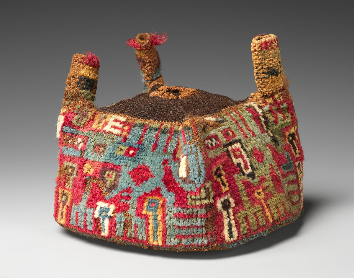 Finely woven, brightly colored hats, customarily featuring a square crown, four sides, and four pointed tips, are most frequently associated with two ancient cultures of the Andes: the Wari and the Tiwanaku. The Wari Empire dominated the south-central highlands and the west coastal regions of what is now Peru from 500–1000 A.D. The Tiwanaku occupied the altiplano (high plain) directly south of Wari-populated areas around the same time, including territory now part of the modern country of Bolivia. The cultures not only developed and flourished as contemporaries, but also occupied adjacent lands for nearly four centuries. A Wari ceremonial center called Cerro Baúl was located a mere five miles from Tiwanaku-settled fields in the Moquegua Valley of Peru. The two cultures likely encountered each other at Cerro Baúl and elsewhere, but the nature of these interactions remains largely unknown.