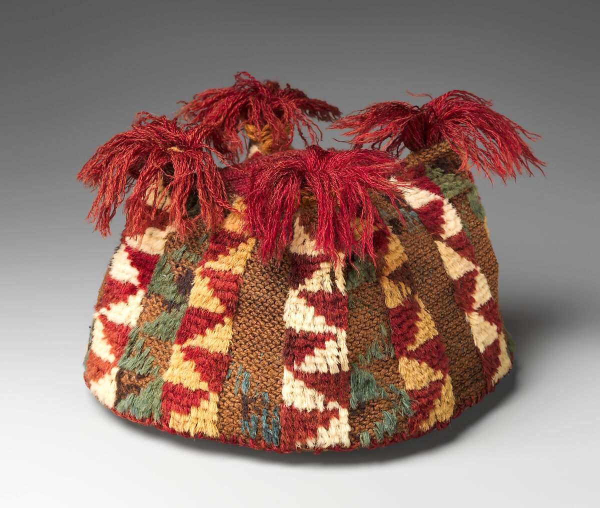 Finely woven, brightly colored hats, customarily featuring a square crown, four sides, and four pointed tips, are most frequently associated with two ancient cultures of the Andes: the Wari and the Tiwanaku. The Wari Empire dominated the south-central highlands and the west coastal regions of what is now Peru from 500–1000 A.D. The Tiwanaku occupied the altiplano (high plain) directly south of Wari-populated areas around the same time, including territory now part of the modern country of Bolivia. The cultures not only developed and flourished as contemporaries, but also occupied adjacent lands for nearly four centuries. A Wari ceremonial center called Cerro Baúl was located a mere five miles from Tiwanaku-settled fields in the Moquegua Valley of Peru. The two cultures likely encountered each other at Cerro Baúl and elsewhere, but the nature of these interactions remains largely unknown.
