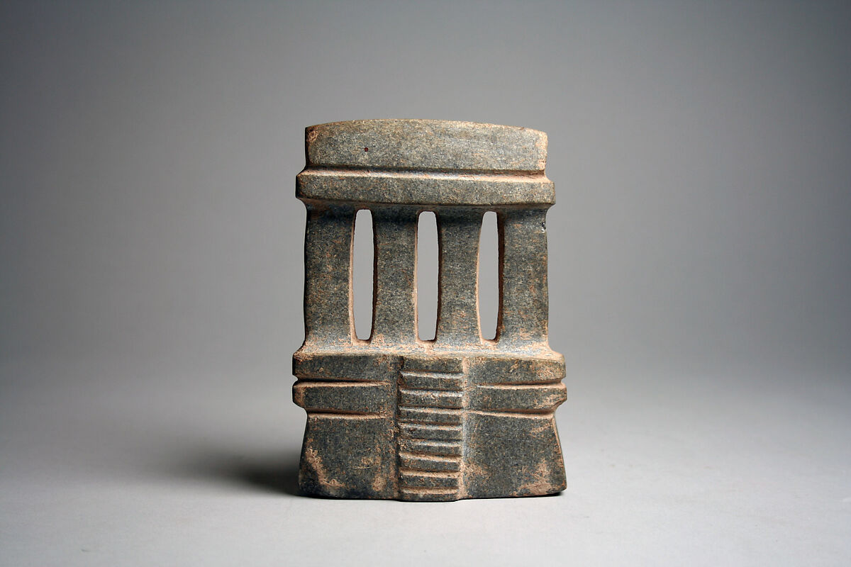 Stone architectural models in the Mezcala style primarily come from the present-day state of Guerrero in southwest Mexico. A particularly long-lived tradition, these works may have been produced over some one thousand years, beginning as early as 500 BCE. Little is known about their archaeological contexts, and there are few points of reference with surviving architecture in the region. It is possible that models with pillars reference buildings with stone columns, such as those from Cuetlajuchitlán.