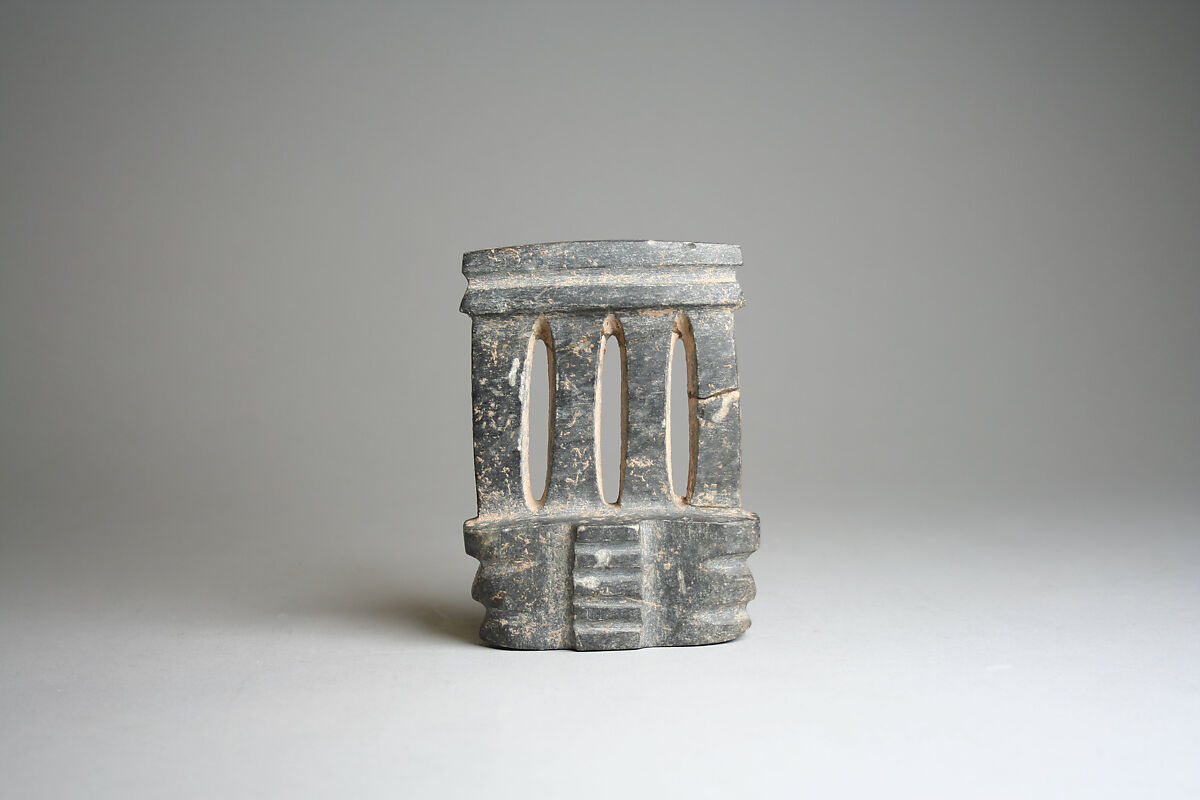 Stone architectural models in the Mezcala style primarily come from the present-day state of Guerrero in southwest Mexico. A particularly long-lived tradition, these works may have been produced over some one thousand years, beginning as early as 500 BCE. Little is known about their archaeological contexts, and there are few points of reference with surviving architecture in the region. It is possible that models with pillars reference buildings with stone columns, such as those from Cuetlajuchitlán.