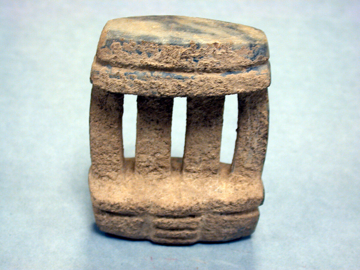 In most examples the rendering favors the two-dimensional; a row of columns representing a façade or entrance which stands for the structure as a whole (see MMA 1979.206.431). Other, more three-dimensional models more closely resemble thatched roofed dwellings (see MMA 1994.35.712). While Mezcala architectural models are generally referred to as temples, it has also been suggested that, when placed in graves, they were meant to serve as dwelling places for the deceased or as entrances into the spirit world (Gay, 1987).