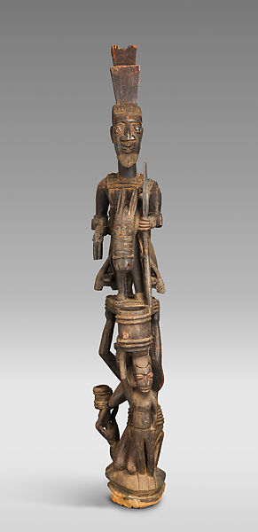 This monumental work was one of a series of carved architectural supports designed for the exterior courtyard of a Yoruba palace. It was commissioned by a king from the most renowned master sculptor in the history of Yoruba art, Olowe of Ise.