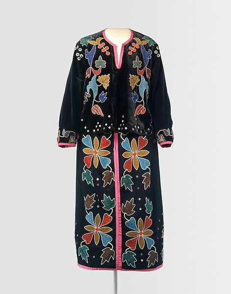 - Medium: cotton velvet, wool and cotton trade cloth, glass beads, paillettes, buttons, silk ribbon