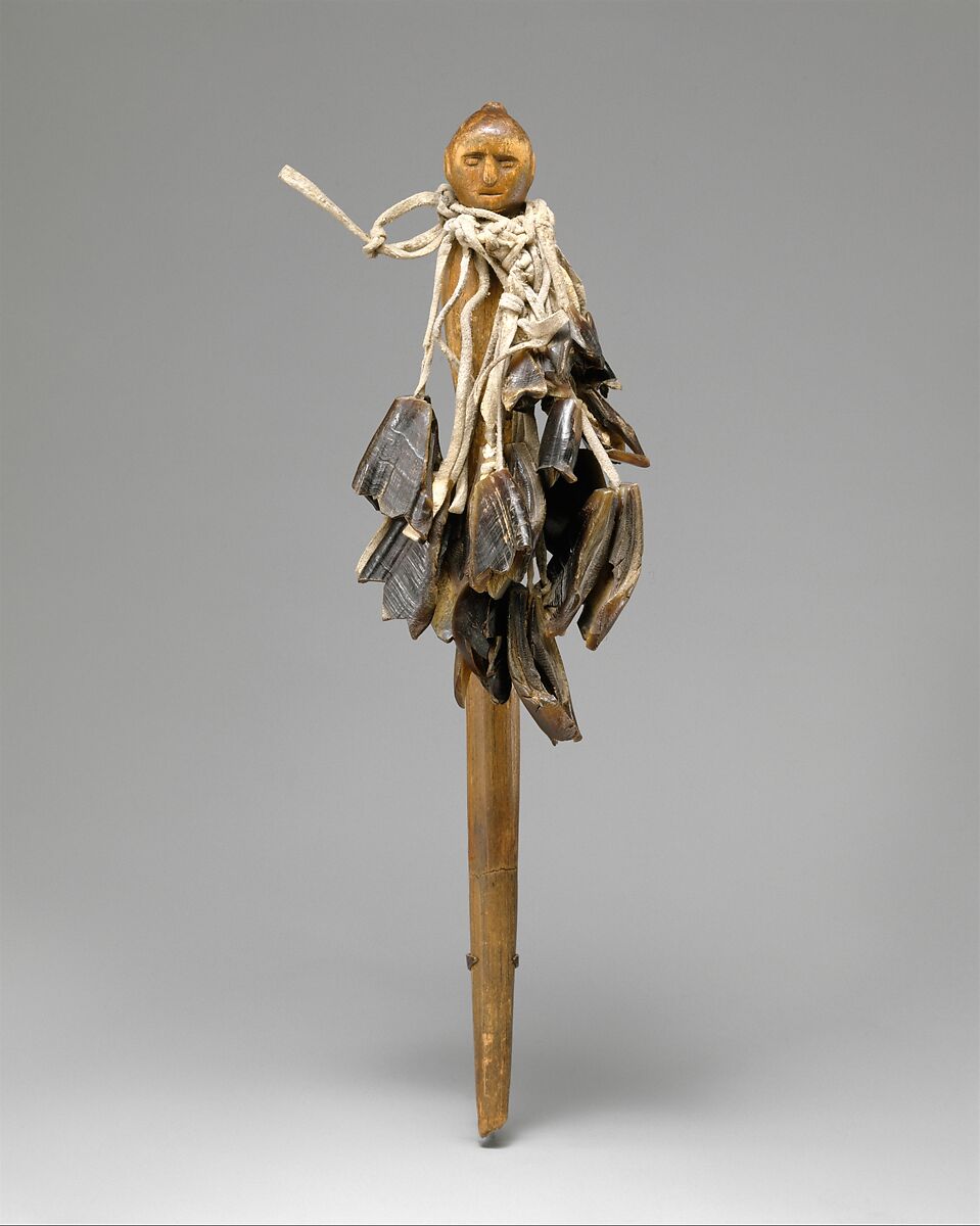 - Medium: Wood, native-tanned skin, deer dewclaws