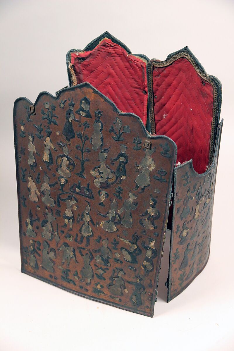 - Medium: Steel, textile (cotton), pigment, copper alloy leaf, lacquer
