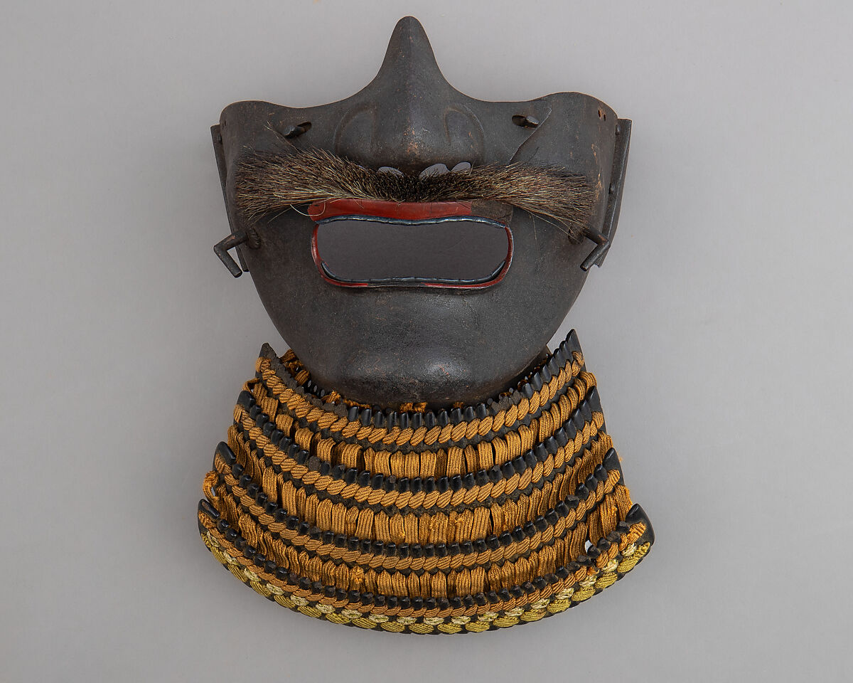 Masks have long played an important role in Japanese culture: in religious ceremonies, dance, Noh theater, and military costume. For samurai, masks served as a principal face defense and helped secure the helmet to the head more firmly.