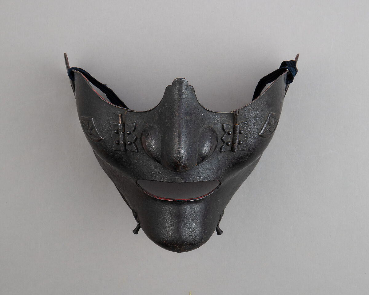 Masks have long played an important role in Japanese culture: in religious ceremonies, dance, Noh theater, and military costume. For samurai, masks served as a principal face defense and helped secure the helmet to the head more firmly.