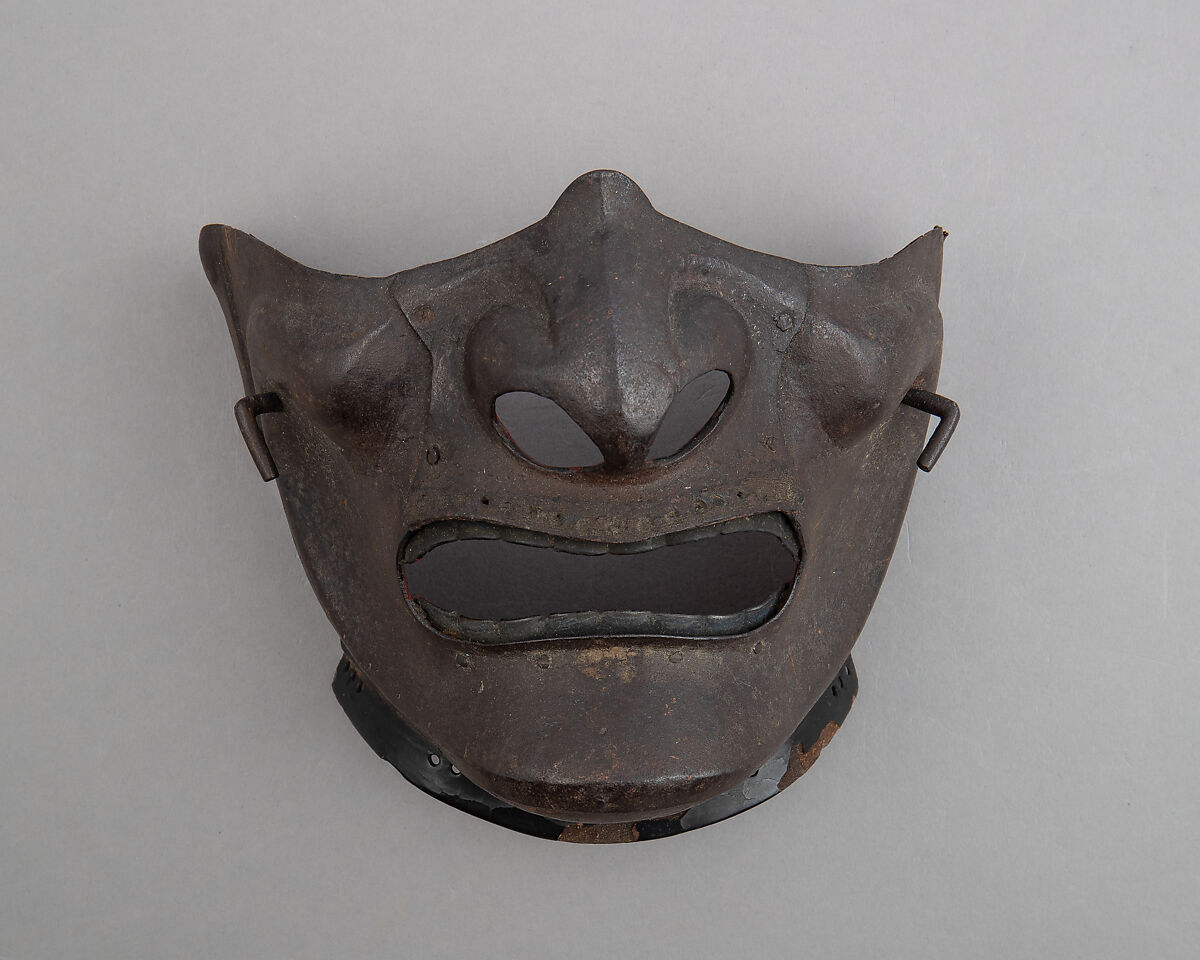Masks have long played an important role in Japanese culture: in religious ceremonies, dance, Noh theater, and military costume. For samurai, masks served as a principal face defense and helped secure the helmet to the head more firmly.