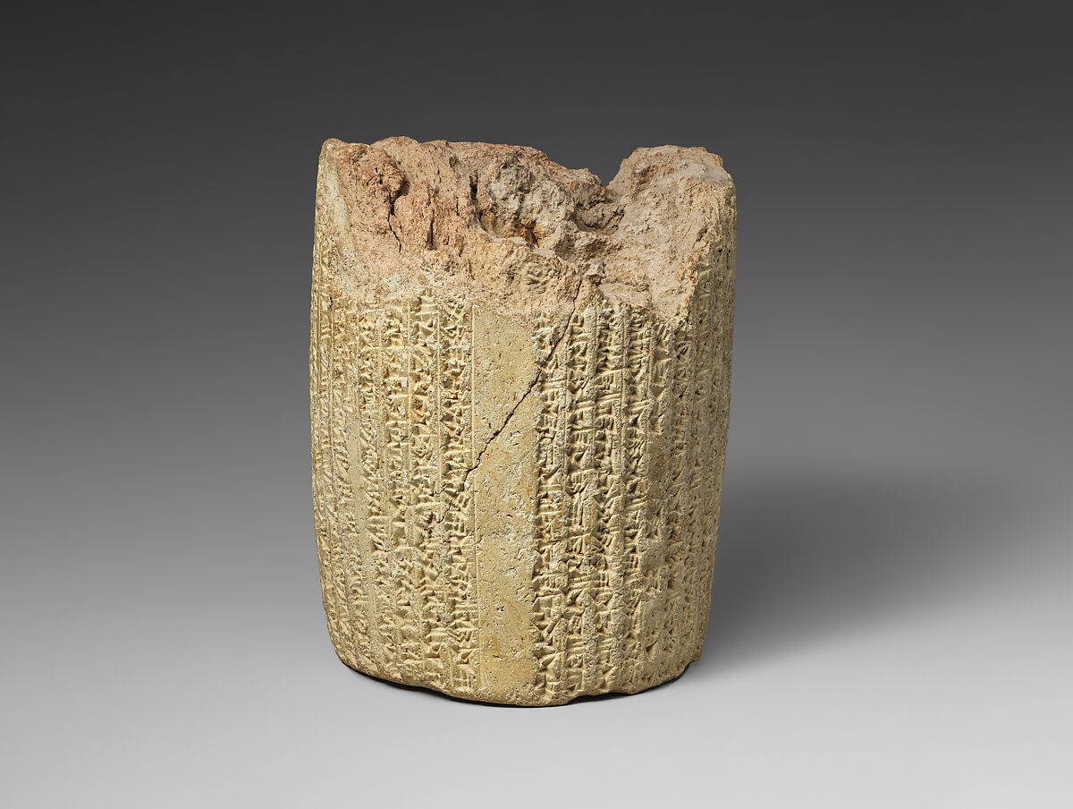 - Title:Cuneiform cylinder: inscription of Nebuchadnezzar II describing restorations at Babylon