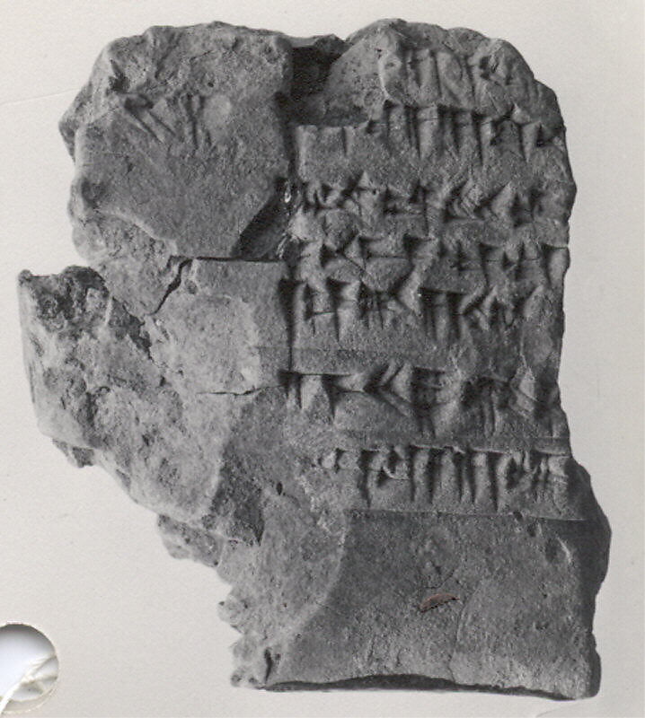 - Title: Cuneiform tablet: fragment, issue of materials used for caulking, Ebabbar archive