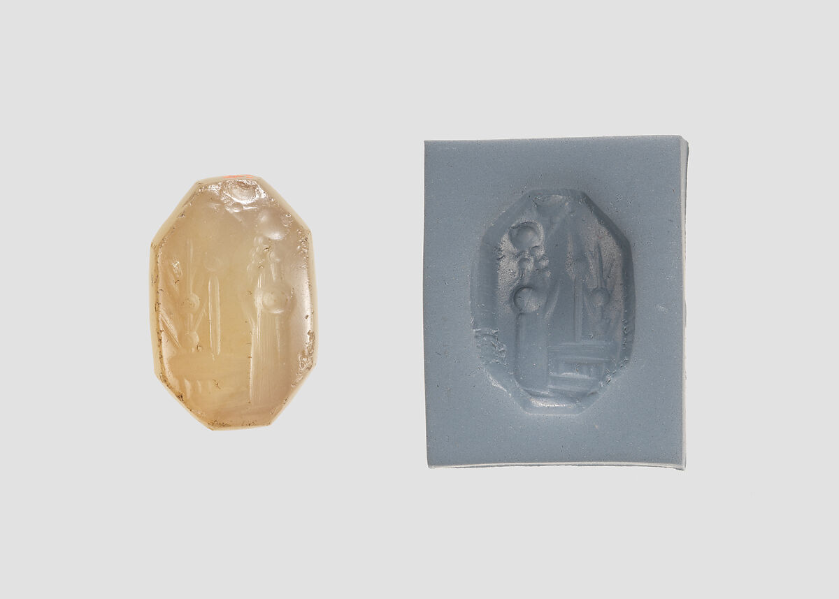 - Title: Stamp seal (octagonal pyramid) with cultic scene